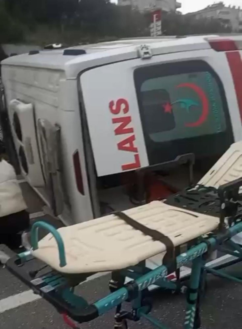 Kaza nedeniyle trafik bir süre kontrollü şekilde sağlanırken, devrilen ambulans çekiciyle otoparka götürüldü.
