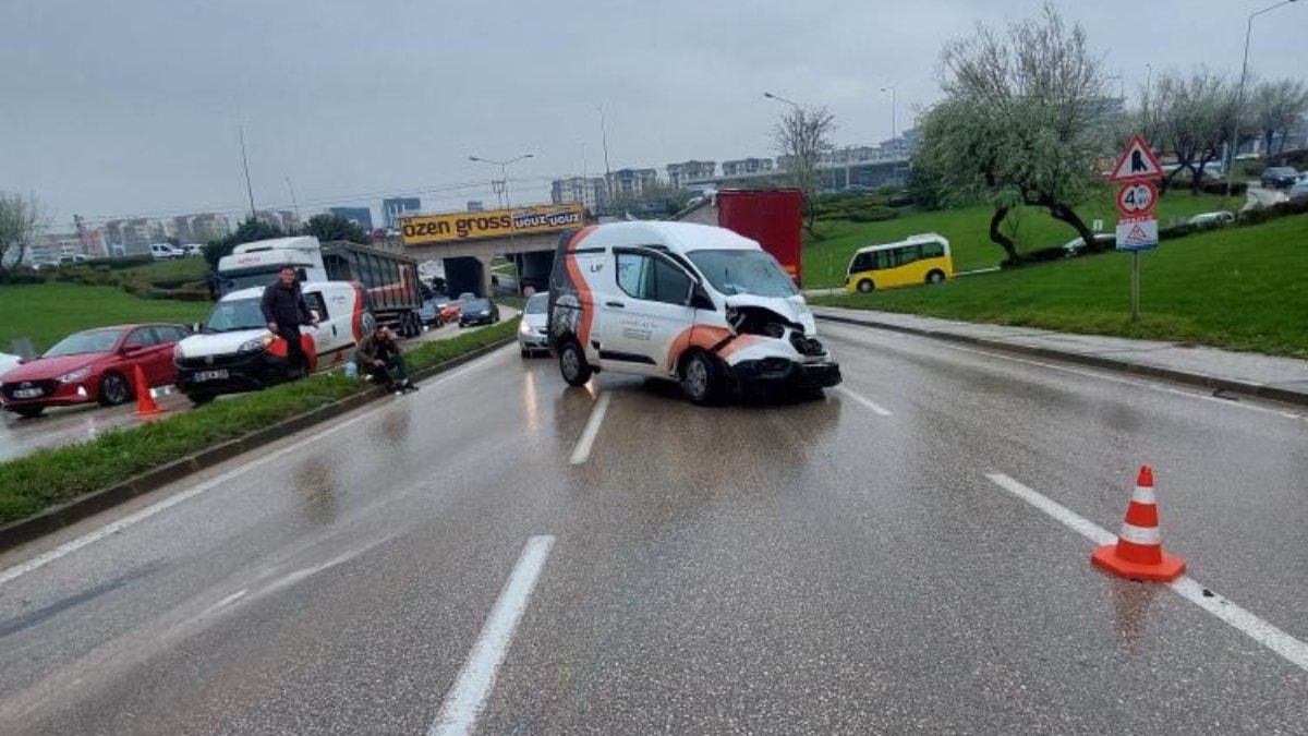 Bursa'nın Nilüfer ilçesinde öğle saatlerinde seyir halindeki kamyonetin sürücüsünün direksiyon hakimiyetini kaybetmesiyle karşı yöne geçti.
