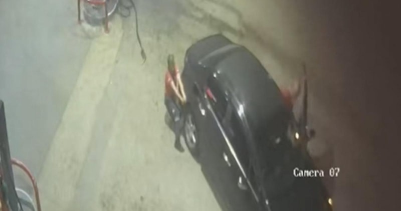O anlar, akaryakıt istasyonunun güvenlik kamerasına yansıdı.