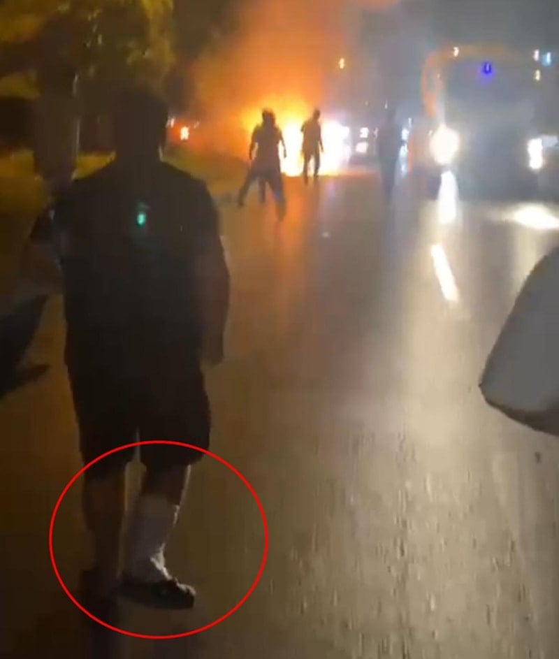Alevlere teslim olan motosikleti söndürmeye çalışan vatandaşlar arasında ayağı kırık vatandaşın müdahalesi dikkat çekti.