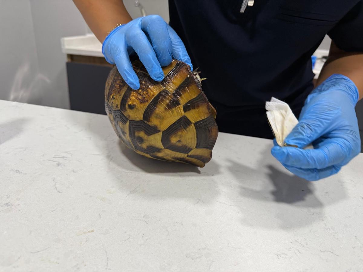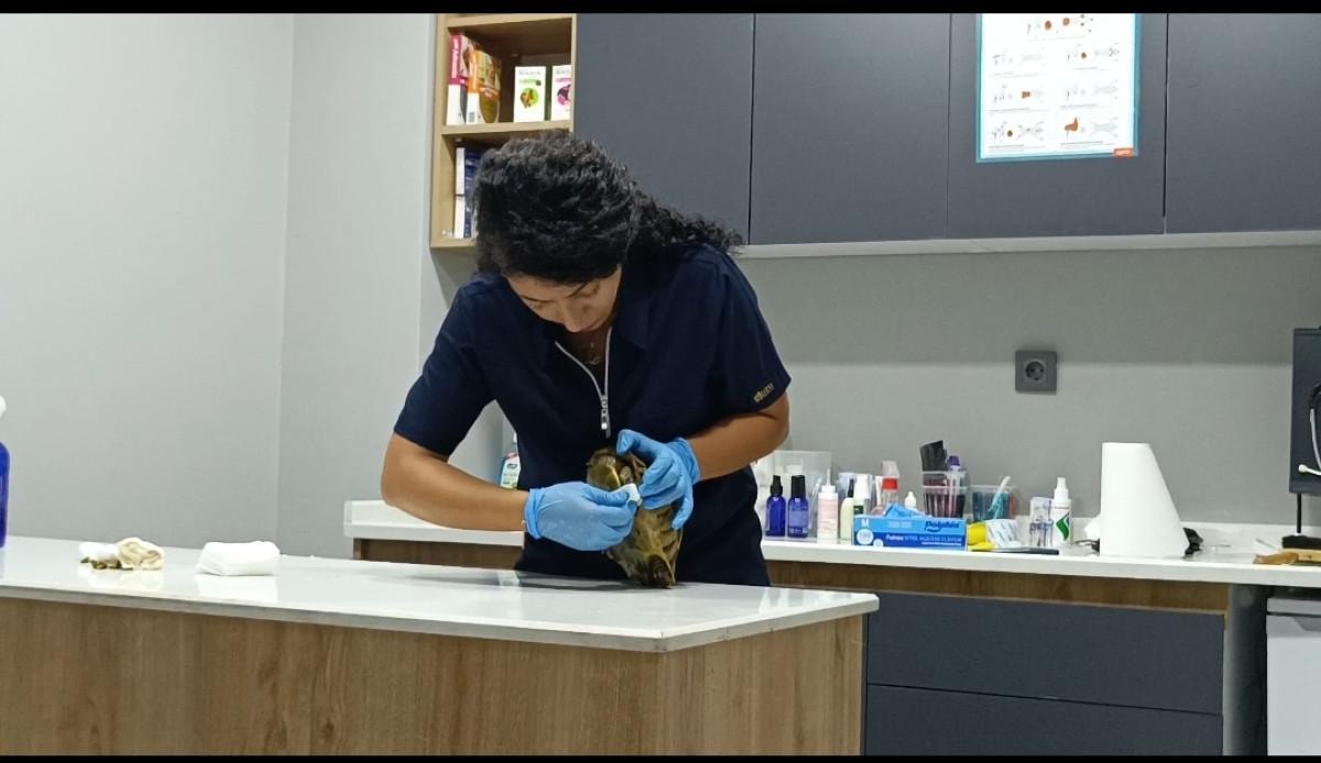 Vücudunda geniş yanık izleri tespit edilen kaplumbağa, hemen veteriner kliniğine götürülerek tedaviye alındı.