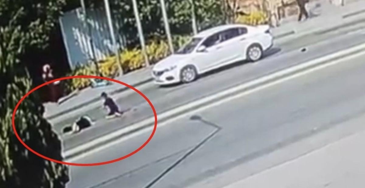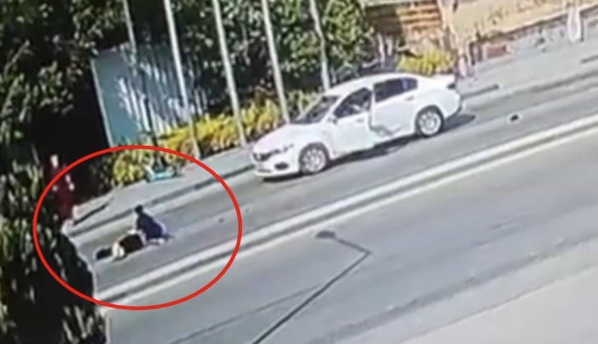 Otomobil sürücüsü ile çevredekiler yaralılara yardım için koşarken; yaralanan küçük çocuk, annesinin yanına giderek yardım çağrısına bulundu.