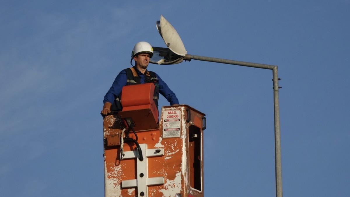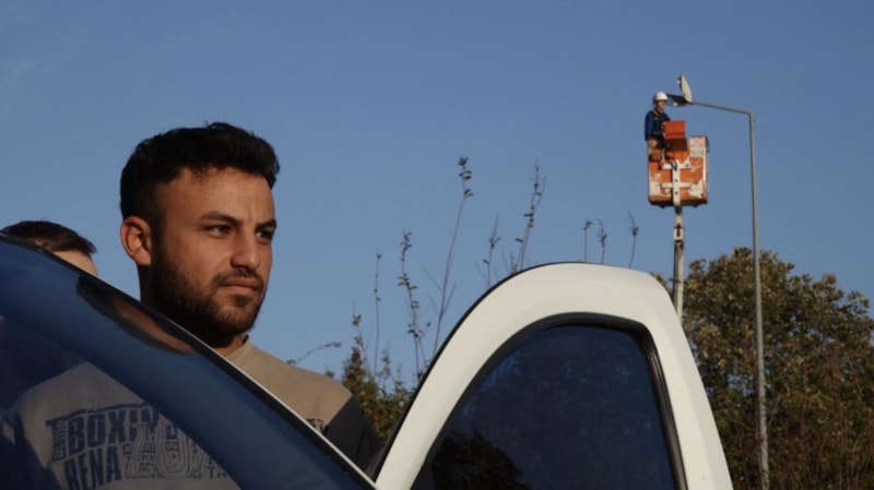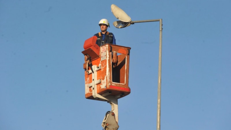 Osmangazi ilçesi Merinos Mahallesi İzmir yolu üzerinde aydınlatma direklerinin bakımını yapan elektrik teknikeri, yerden 18 metre yükseklikte çalıştığı sırada siren seslerini duyunca, çalışmasını yarıda bırakarak saygı duruşuna geçti.
