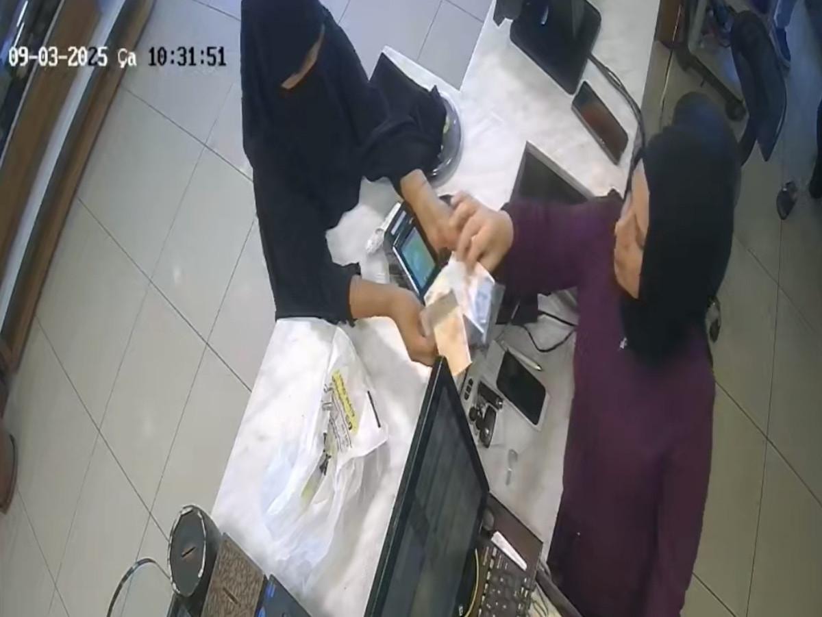 Pastanenin güvenlik kamerasına yansıyan görüntülerde, şüpheli kadının kasiyeri kandırmaya çalıştığı, ardından parayı cüzdanına sakladığı ve işletme müdürünün olaya müdahale ettiği anlar yer aldı.