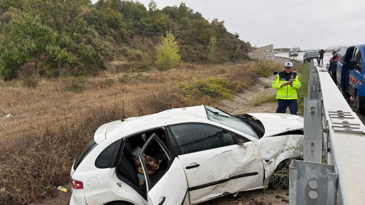 Bursa'nın İznik ilçesinde seyir halindeki otomobil yoğun yağış nedeniyle kayganlaşan yolda seyir halinde olan Yunus Ş. idaresindeki otomobil sürücüsü, direksiyon hakimiyetini kaybetmesiyle kontrolden çıkarak refüje uçtu.