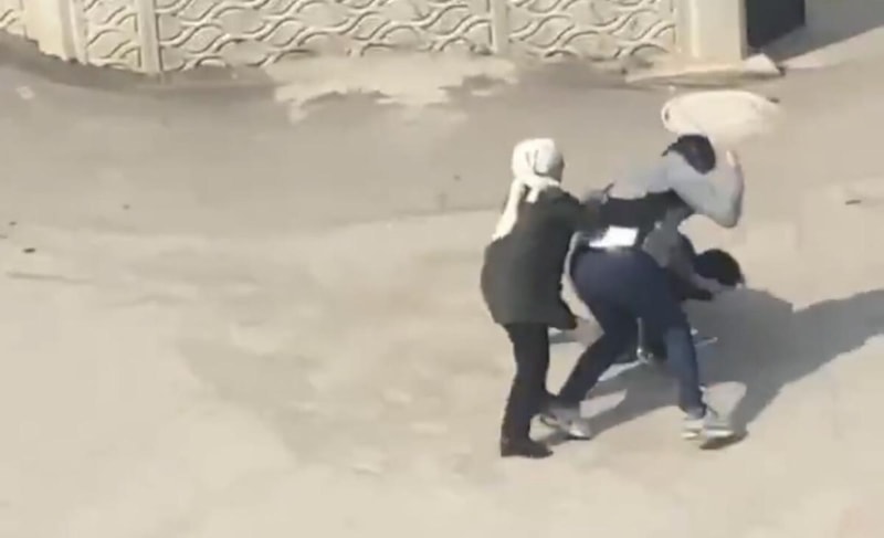 Sopaların, yumrukların ve terliklerin havada uçuştuğu kavga, çevredeki vatandaşların araya girmesiyle sonlandı.