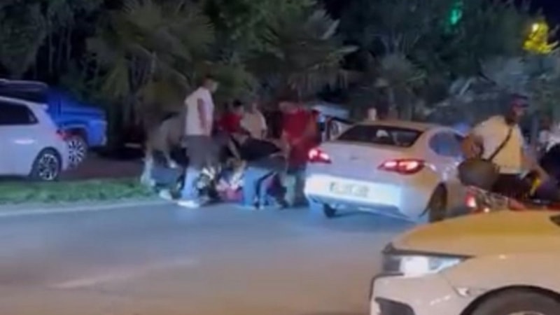 Kavgayı vatandaşlar güçlükle ayırdı. O anlar cep telefonu kamerasıyla kaydedildi.