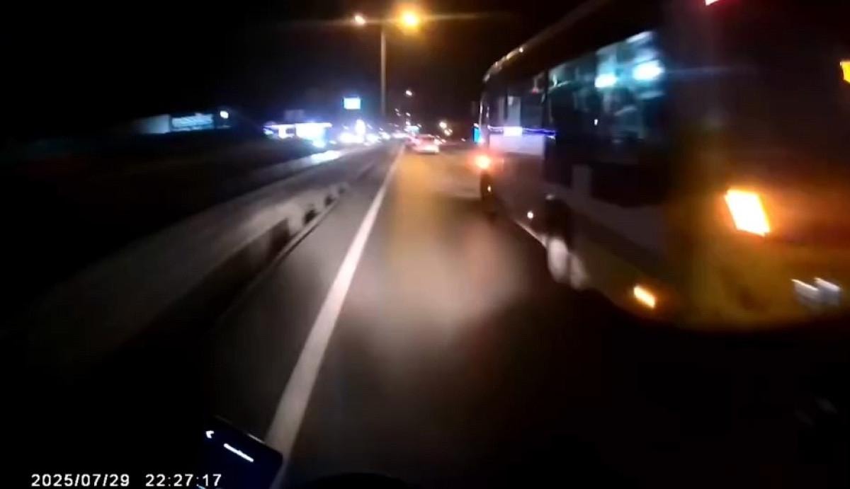Mehmet C. isimli motosiklet sürücüsü sollama yaptığı sırada, aynı istikamette seyreden özel halk otobüsünün şoförü sinyal verip, sol şeride geçerek motosikletliyi sıkıştırdı.