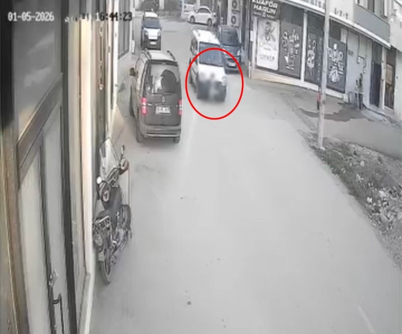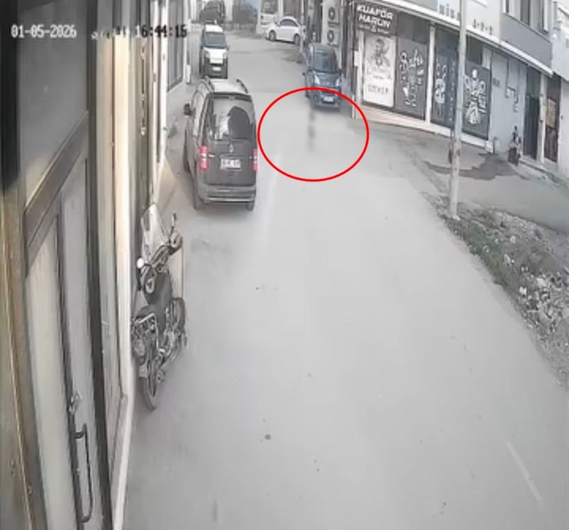 Aniden yola fırlayan 2 yaşındaki kız çocuğuna, hafif ticari araç çarptı. Aracın altında sürüklenen çocuğun hafif sıyrıklarla atlattığı kaza, iş yerinin güvenlik kamerasına yansıdı.
