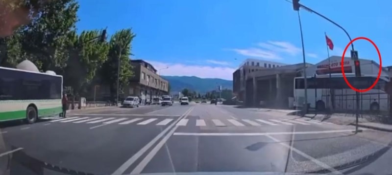 Bursa'nın Osmangazi ilçesi Veysel Karani Mahallesi'nde yolcu minibüsünün sürücüsü, kırmızı ışıkta durmayıp, ters şeride girerek bekleyen araçları geçti.
