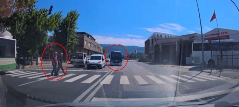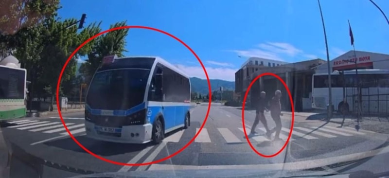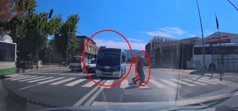 Bu sırada yaya geçidinden geçen 2 kişi ise üzerlerine gelen minibüsü görünce, koşarak ilerledi.