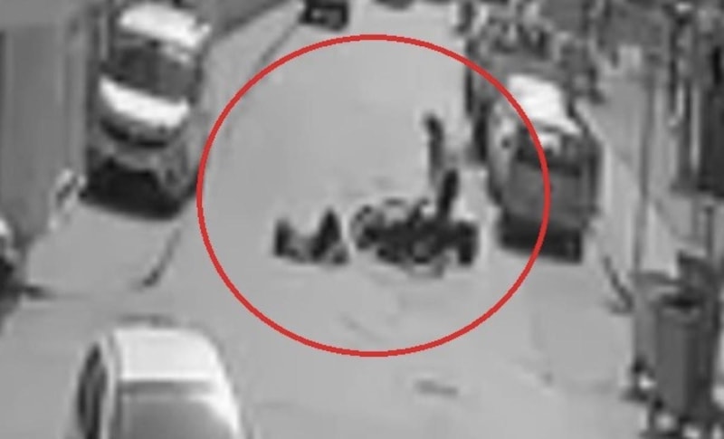 Osmangazi ilçesinde motosikletli kurye, cadde üzerinde yürüyen bir kadına çarptıktan sonra olay yerinden kaçtı. O anlar güvenlik kamerasına yansırken, yaralı kadının yardımına çevredekiler yetişti.