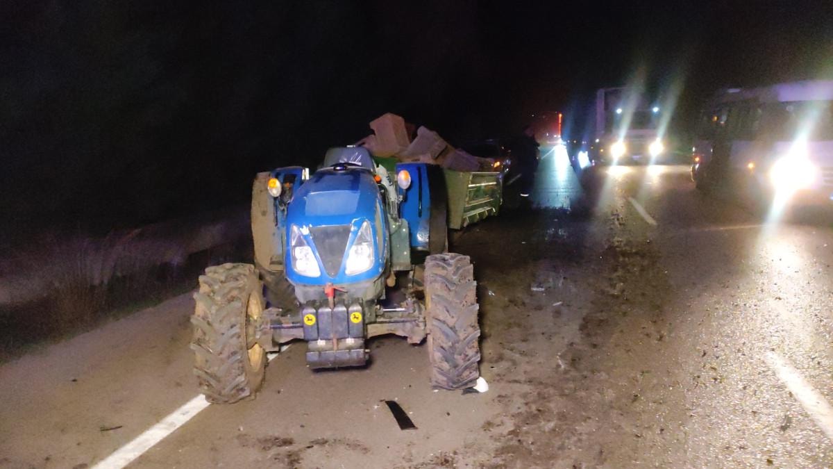 Bursa'nın Orhangazi ilçesi istikametinden İznik istikametine gitmekte olan polis memuru Muhammet Emin D. (22) yönetimindeki otomobil, arka lambaları yanmayan Burhan K. (46) yönetimindeki traktörün römorkuna çarptı.