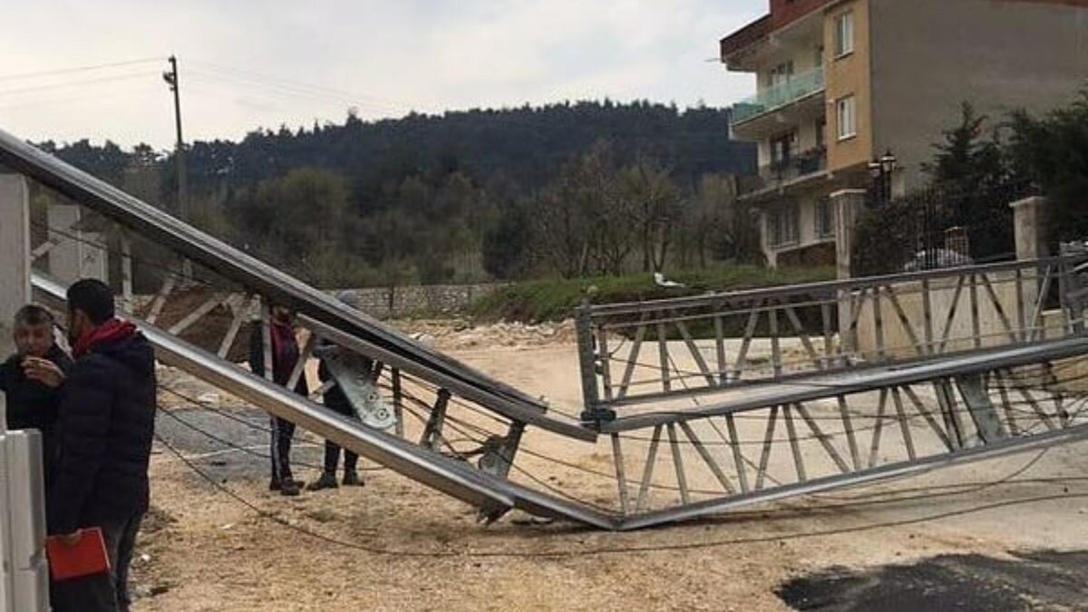 Şiddetli rüzgar nedeniyle metrelerce uzunluğundaki vinç, inşaat halindeki apartmanın bulunduğu bölüme doğru devrildi.