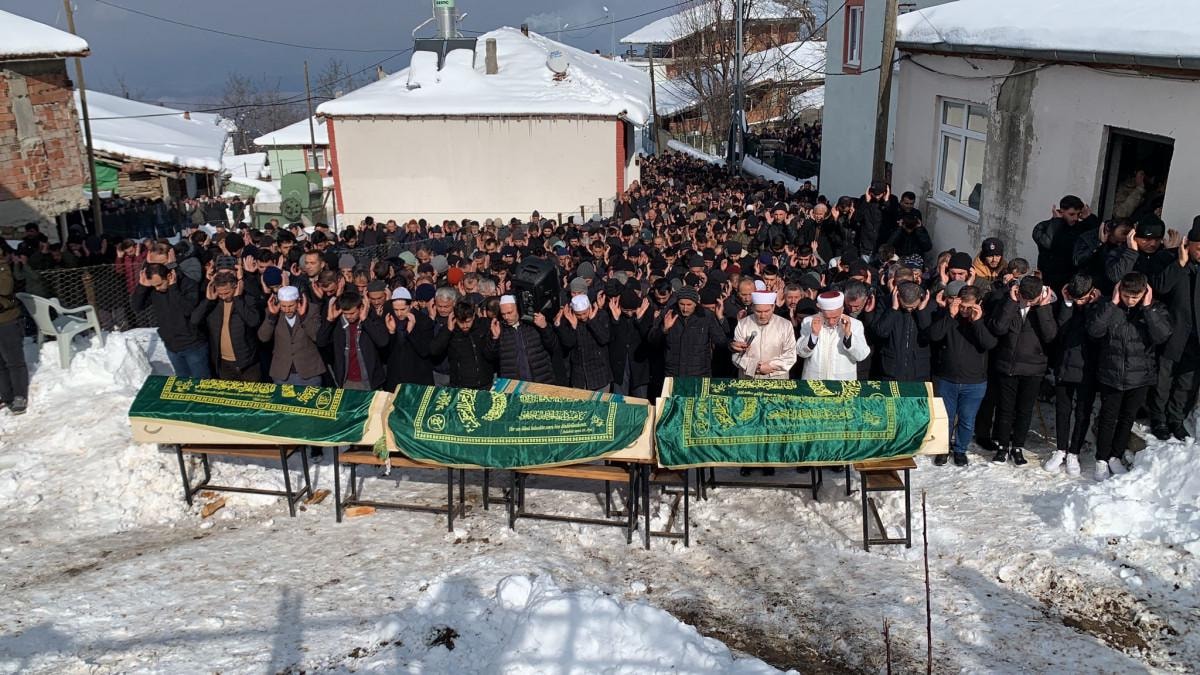 İlçe Müftüsü Naci Yalçınkaya'nın kıldırdığı namaz sonrası 5 kişinin cenazesi, aile kabristanlığında toprağa verildi.