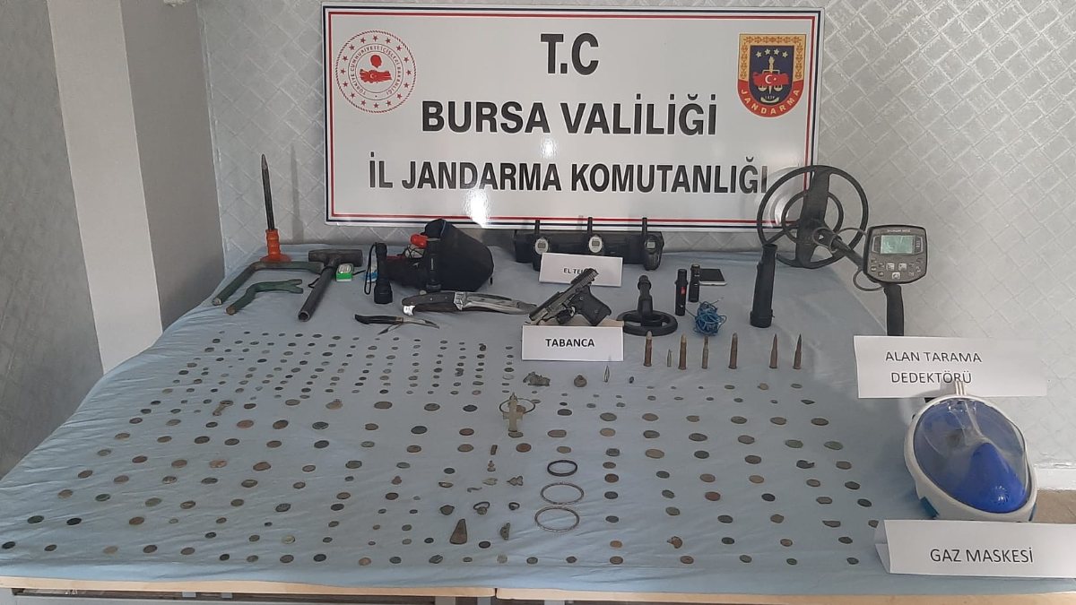 Bursa İl Jandarma Komutanlığı İstihbarat Şube Müdürlüğü ekipleri, R.Ç.'nin elinde bulundurduğu tarihi eserleri Mudanya ilçesi Kumyaka Mahallesi’nde satacağı bilgisine ulaştı.