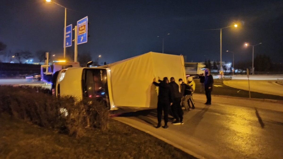 Bir süre yol trafiğe kapanırken, devrilen kamyonet çevrede bulunan vatandaşlar ile polis ekipleri tarafından kaldırılarak, yoldan çekildi.