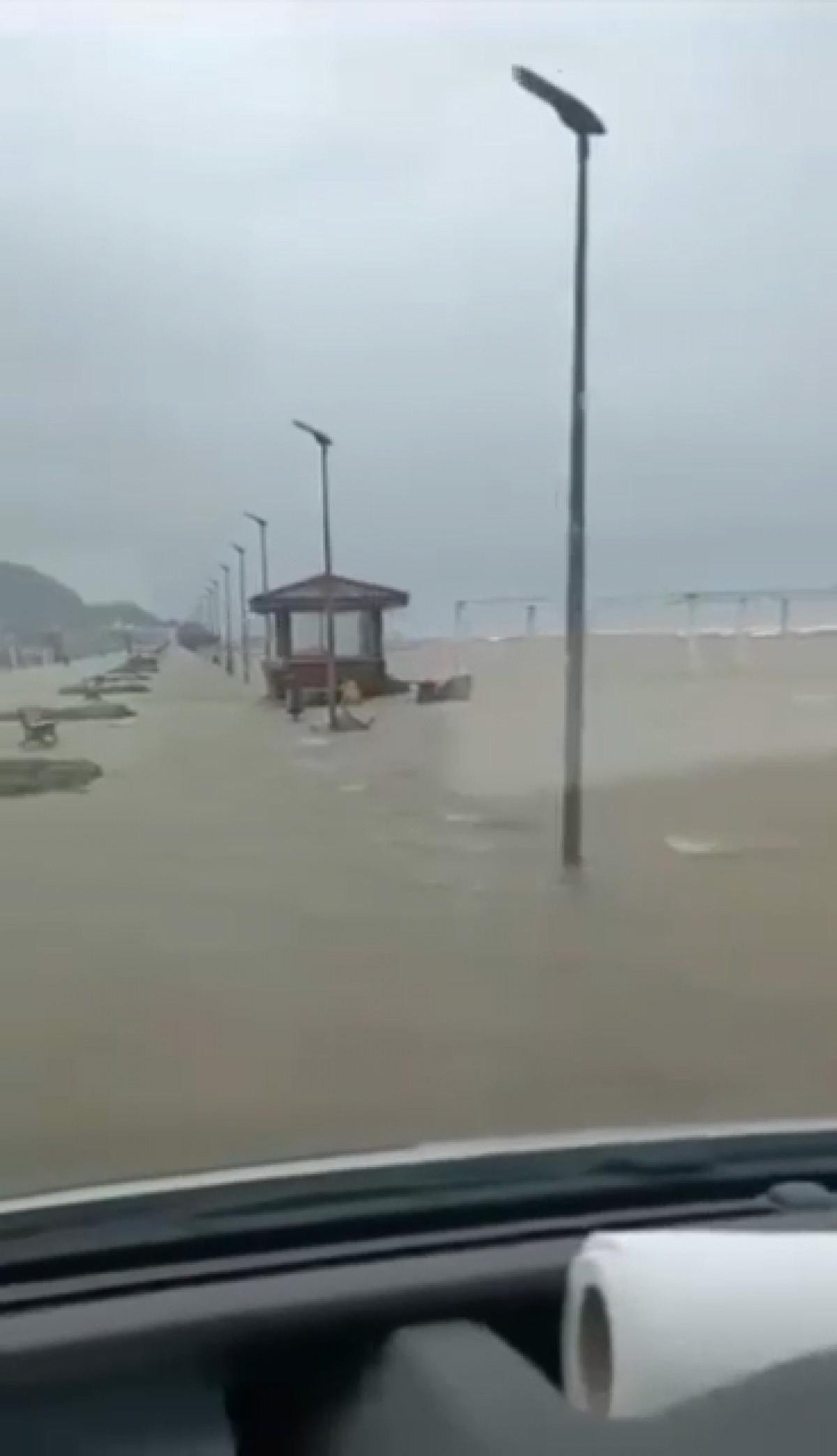 Taşan deniz suyu 50 metre ilerleyerek caddeye taştı.