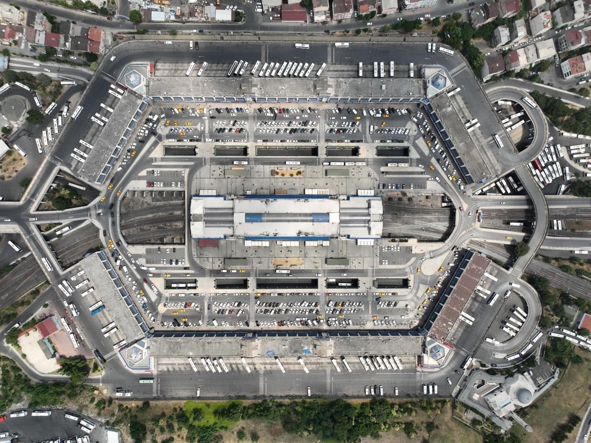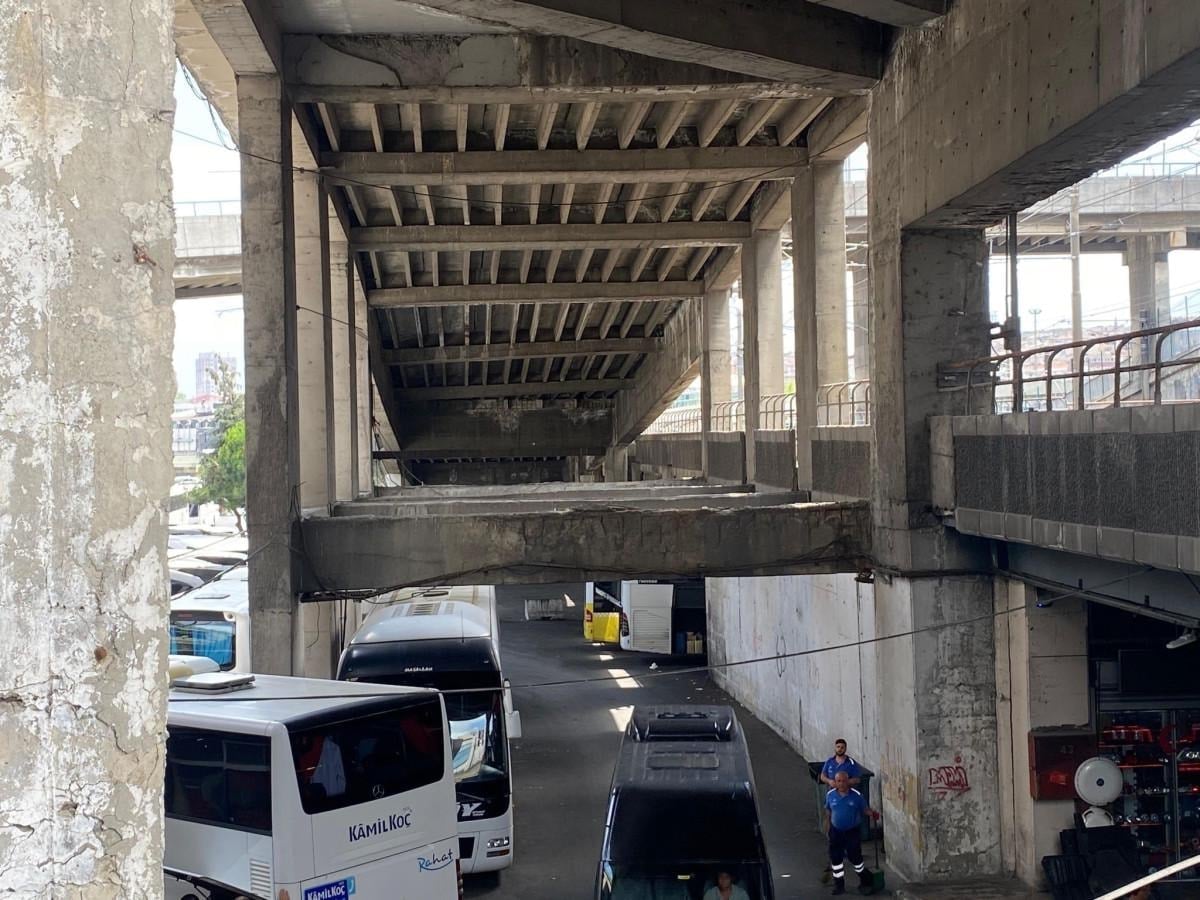 Havadan görüntülenen otogarın bazı kolonlarının yıpranmış durumda olduğu gözler önüne serildi.