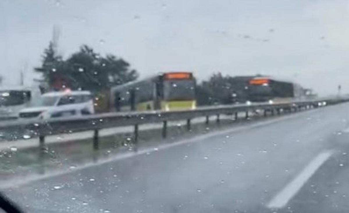 - İstanbul Büyükçekmece'de yağış nedeniyle kayganlaşan yolda, bir İETT otobüsü sürücüsünün direksiyon hakimiyetini kaybetmesi sonucu yoldan çıktı.