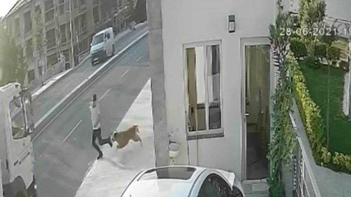 İstanbul'un Büyükçekmece ilçesinde kaldırımda yürüyen Ekrem Binak, yerde yatan sokak köpeğinin yanında havlamasıyla paniğe kapılıp yola atladı.