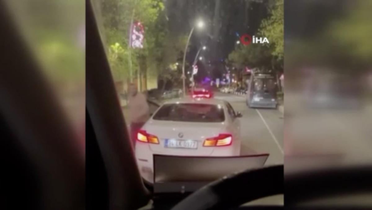 Çıkan tartışma sonrasında otomobil sürücüsü diğer aracın önünü kesti.