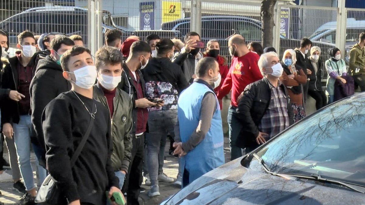 Öte yandan iş yerinde çıkan yangını izleyen ve görüntülemeye çalışan büyük bir kalabalık grup, koronavirüs salgınını unutarak sosyal mesafe kuralını hiçe saydı. Bazı meraklı kişilerin maske bile takmadığı görüldü.