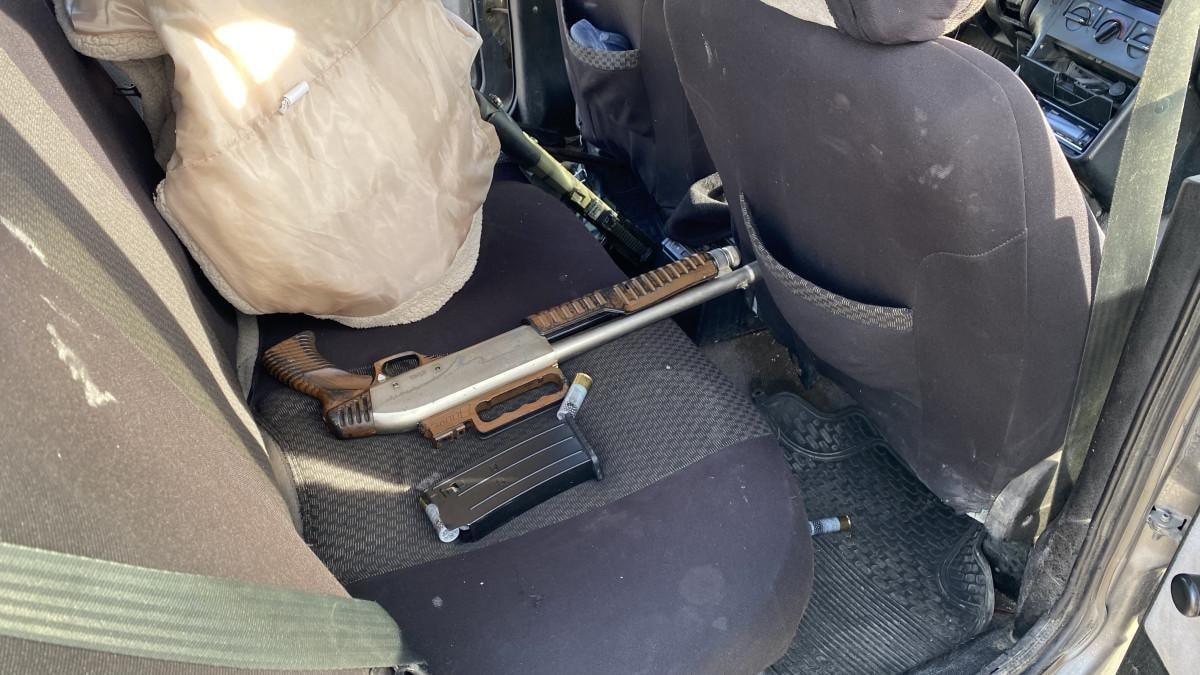 Araçta yapılan aramalarda 2 pompalı tüfek ele geçirildi.