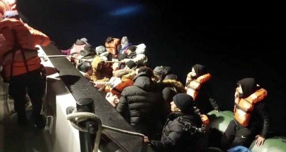 Sahil Güvenlik Botu ‘TCSG-913’ tarafından durdurulan hareket halindeki lastik bot içinde Afganistan uyruklu 45 kaçak göçmen yakalandı.