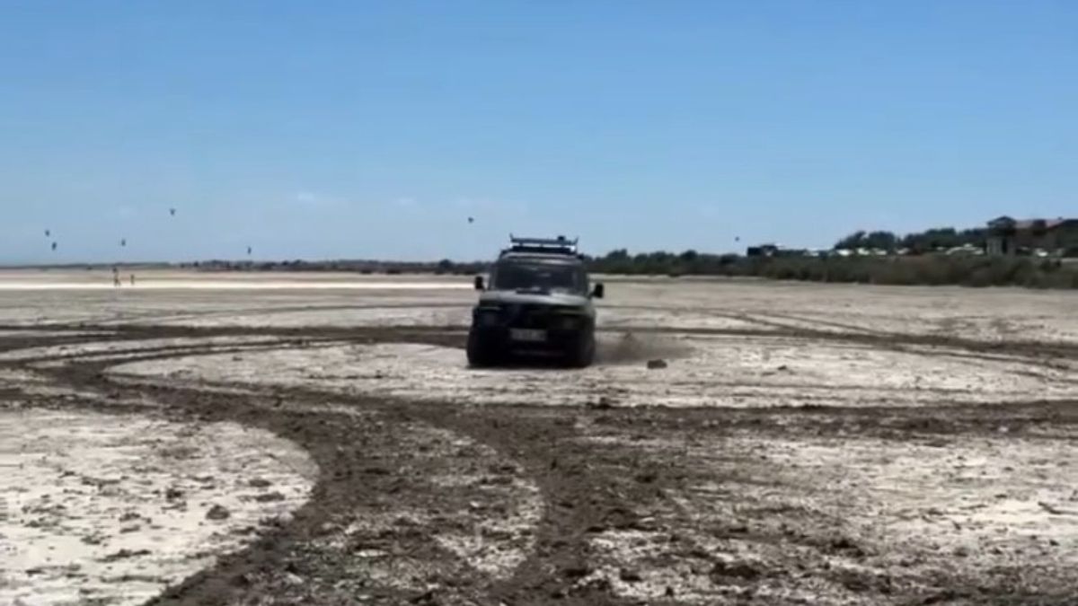 Gökçeada ilçesine bağlı Eşelek köyünde dün H.K.Y. isimli şahıs, 34 MCG 488 plakalı arazi aracı ile Tuz Gölüne girerek gölün içinde drift yaptı.
