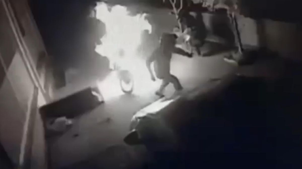 Öte yandan motosikletin kundaklanma anı, güvenlik kameralarına yansıdı.