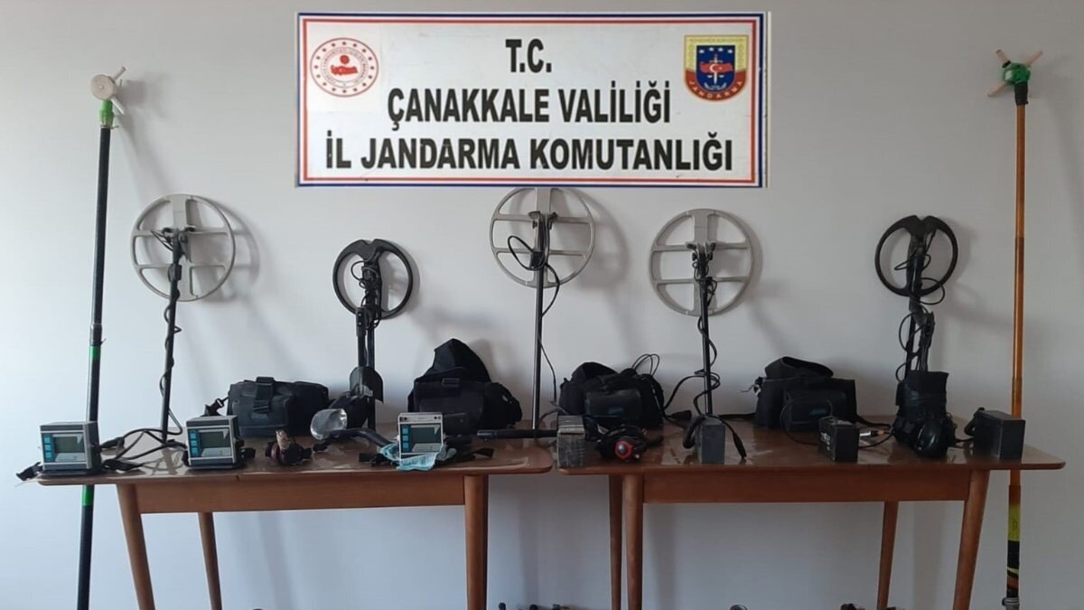 Yakalanan şüpheli şahıslarla birlikte; 5 adet dedektör, 4 adet dedektör yeleği, 3 adet dedektör kulaklığı, 3 adet dedektör ekran monitörü, 4 adet akü, 5 adet güç aktarım kablosu, 20 adet dedektör çubuğu, 4 adet balıkçı çizmesi, 1 adet araç ele geçirildi.