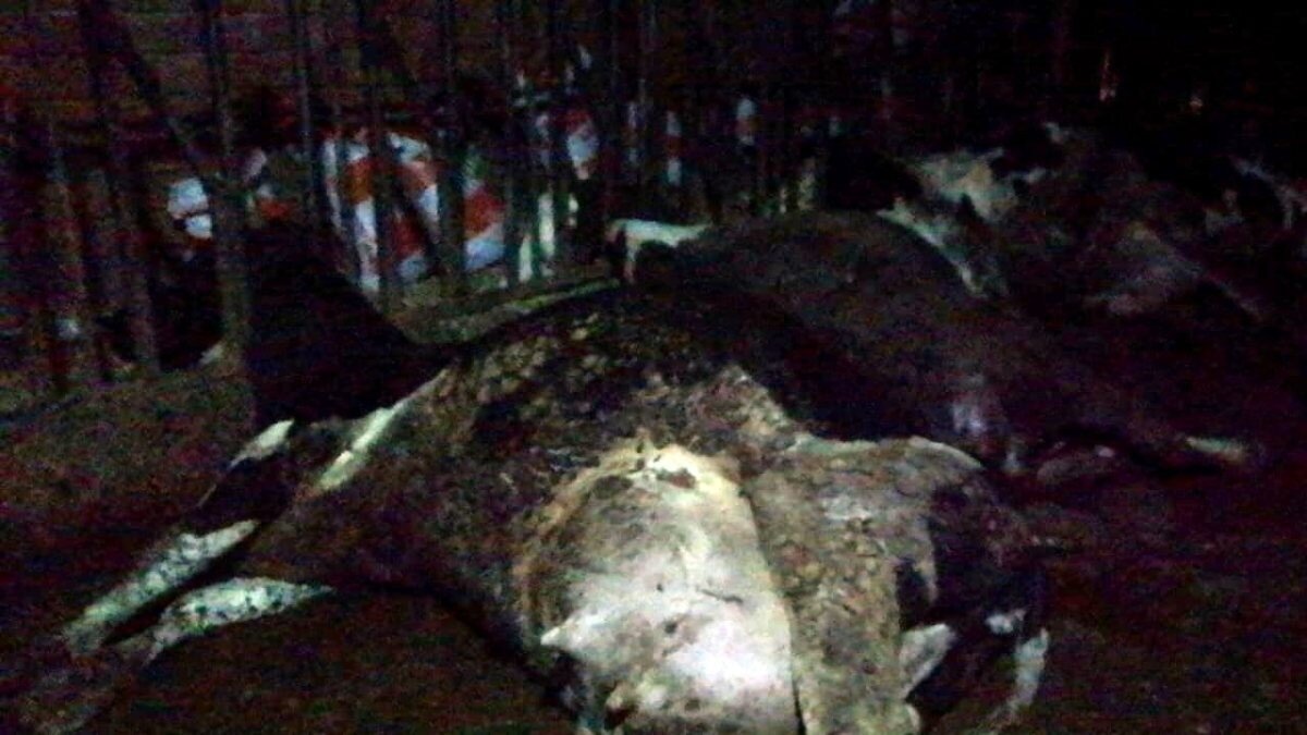 Çanakkale'nin Yenice ilçesine bağlı Pazarköy köyünde, Köy Muhtarı Mehmet Şakar’ın büyükbaş hayvan işletmesindeki elektrik kabloları metal çatıya temas etti.