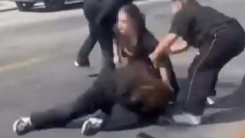 14 yaşındaki iki kız öğrenci, okul çıkışında yaşanan tartışmanın ardından birbirine girdi. Arbede esnasında öğrencilerden biri yerde sürüklendi, kavga anı cep telefonu kamerasıyla saniye saniye kaydedildi.