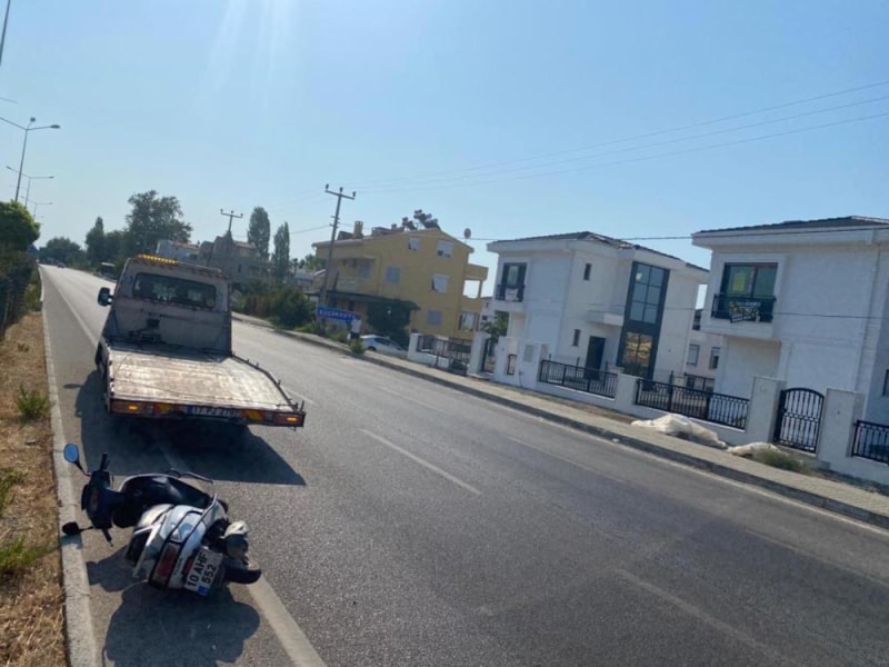Çanakkale’nin Ayvacık ilçesine bağlı Küçükkuyu beldesinden Balıkesir’in Edremit ilçesine doğru seyreden Kıymet Tunç’un kullandığı 10 AHF 552 plakalı motosiklet, sürücünün direksiyon hakimiyetini kaybetmesi sonucu kaldırıma çarparak devrildi.