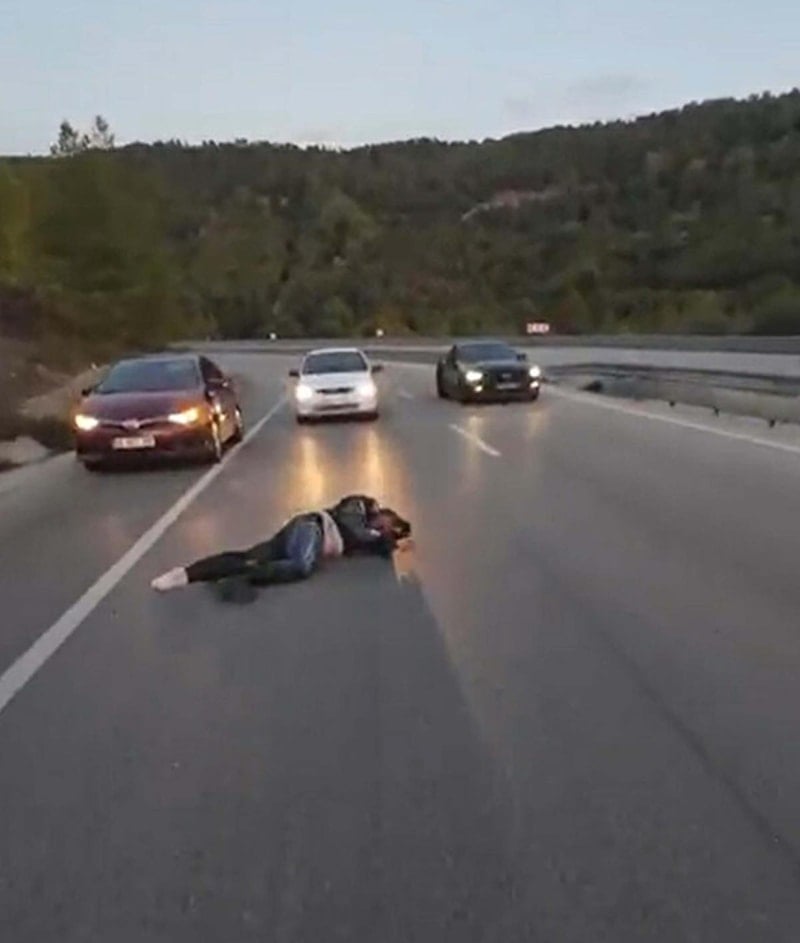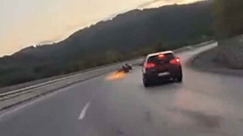 Yoldaki sürücüler ve sürüş anını kayda alan diğer motosikletli, 23 yaşındaki Öztekin'in yardımına koştu.