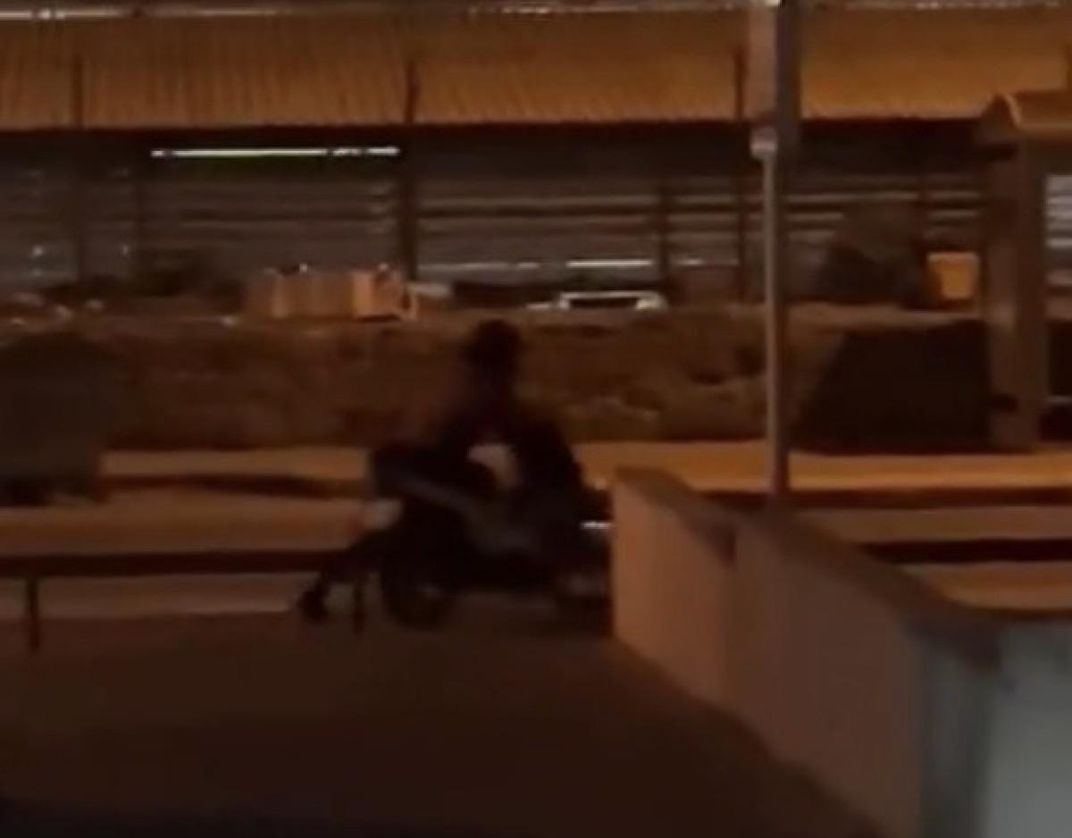 Vatandaş, motosikleti iterek götüren hırsıza "Seni şikayet edeceğim. Buraya getir onu. Motoru çalıyor. Şu an motoru çaldı götürüyor. Hırsız.” diyerek bağırdı.