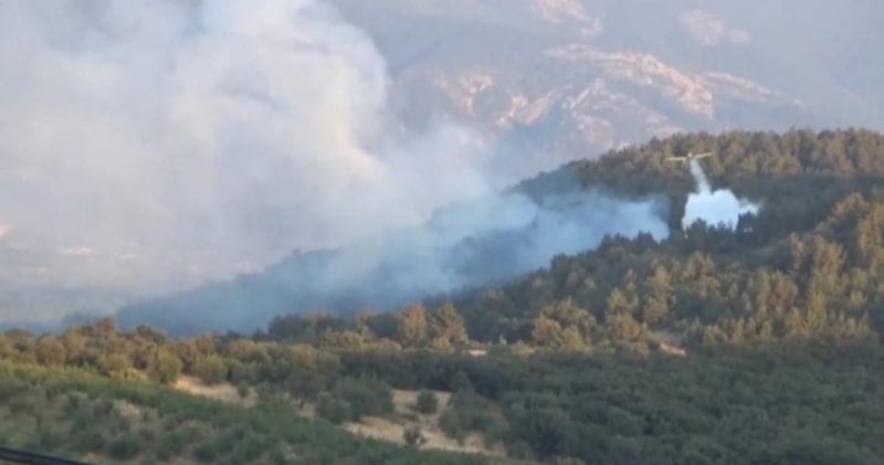Havanın kararmasıyla birlikte hava desteği sona ererken, ekipler yangını kontrol altına almak için karadan müdahaleye devam ediyor.