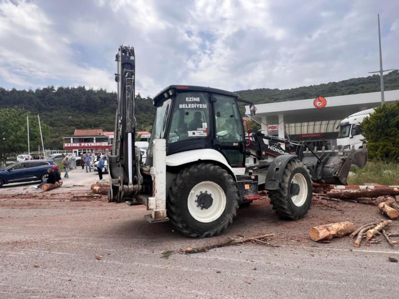 Kazayla ilgili soruşturma başlatılırken, yola savrulan tomruklar Ezine Belediyesi ekipleri tarafından kaldırılmaya başlandı.