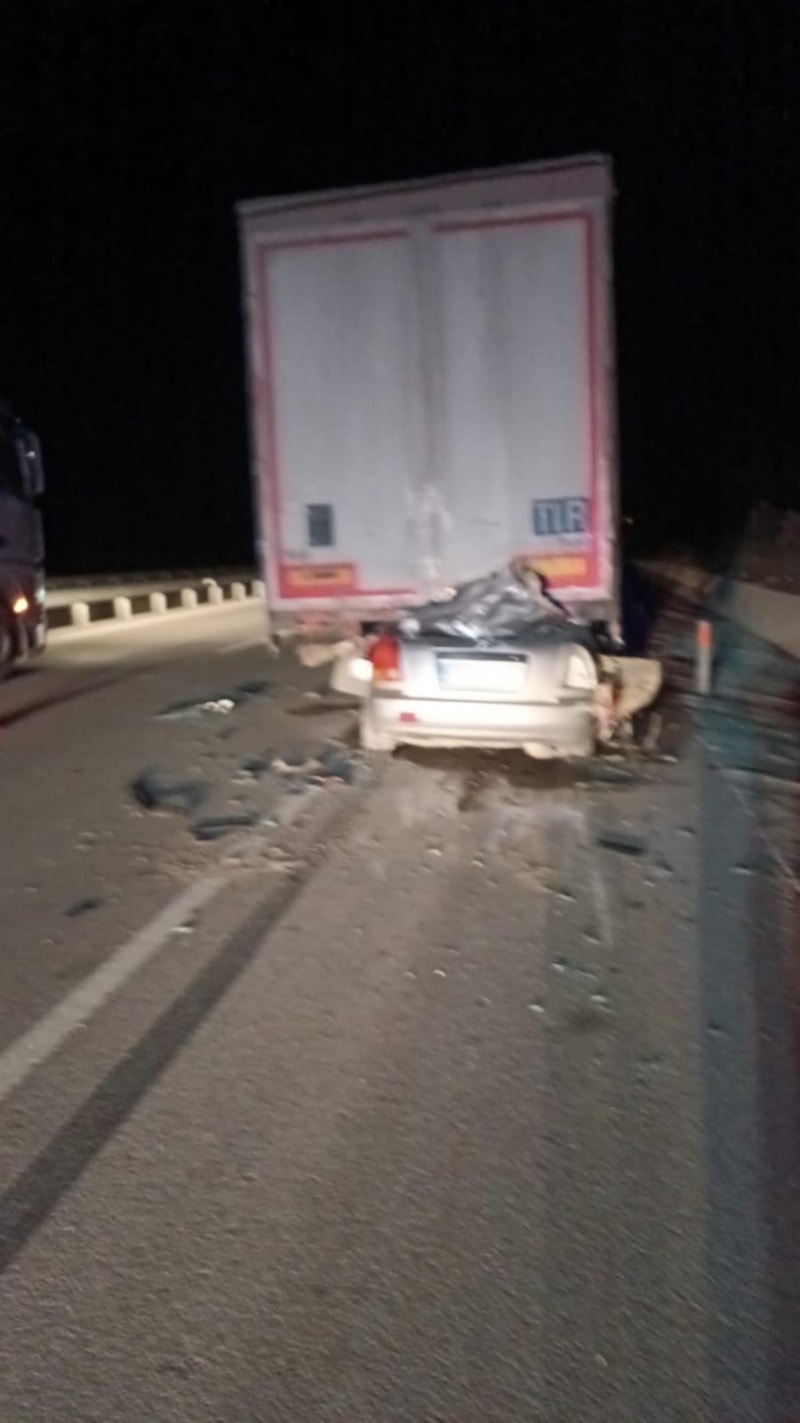 Çanakkale'nin Ezine ilçesi Bahçeli köyü mevkisi Ayvacık- Ezine kara yolunda Çanakkale yönüne giden Ceyhun Efe yönetimindeki 17 KS 696 plakalı otomobil, aynı yöne giden A.G. yönetimindeki 35 ABR8 70 plakalı tıra arkadan çarptı.