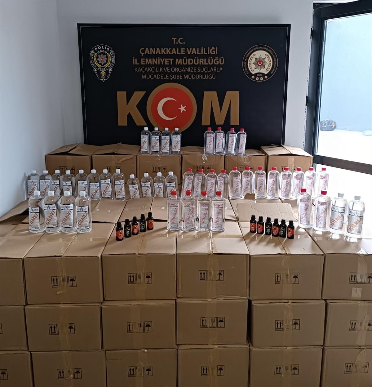 Çanakkale'de düzenlenen operasyonda, içeriğinde alkol bulunan ve sahte içki yapımında kullanılan 1633 litre kimyasal madde ele geçirildi.