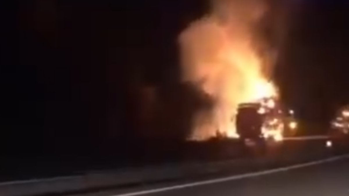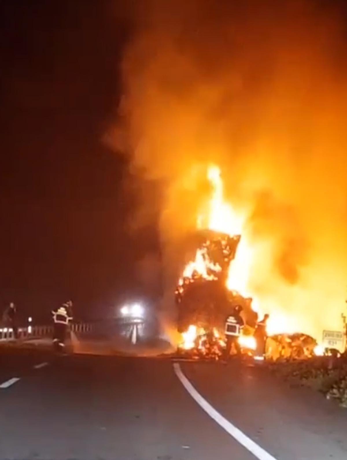 Çanakkale-Biga karayolu üzerinde seyreden saman yüklü tırda, Gürecealtı yakınlarında henüz belirlenemeyen nedenle bir yangın çıktı.