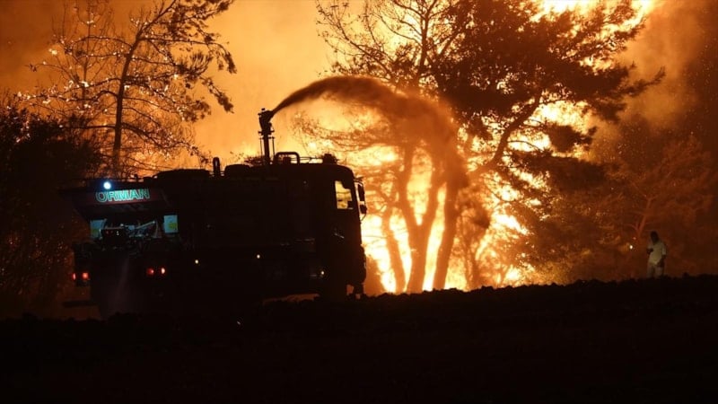 Sabaha kadar arkadaşlarımız hiç uyumadan alevlerle mücadele edecekler. Sabah da diğer hava araçlarının da başlamasıyla çok yoğun bir şekilde mücadeleye başlanacak."