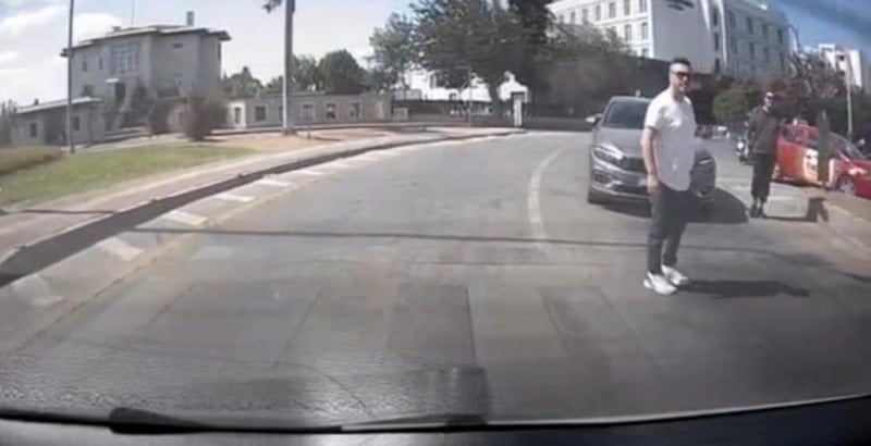 Kent merkezinde trafikte yol verme tartışmasına giren sürücü diğer sürücünün önünü otomobiliyle kesti. O anlar araç kamerasına yansıdı. Sürücü B.G.'nin şikayetçi olması üzerine G.A. ve araç içerisindeki Ö.B. emniyet ekipleri tarafından yakalanarak gözaltına alındı.
