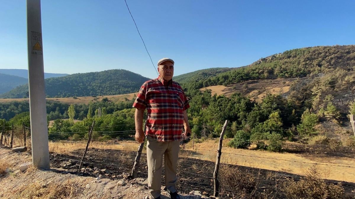Biz geldiğimizde buradaki direğin altından çıkan ateş ormana doğru ilerledi. Hemen su tankerleriyle yangının çıktığı noktaya geldik. Yangını önleyemedik. Ardından itfaiye geldi. Müdahale edilirken ateş karşı tepeden görüldü. Rüzgarın da etkisiyle direkteki teller birbirine çarpıyordu. O kıvılcımlardan buraya ateş düştü, yandı. Biz yol boyuna su tankerlerini çekip, köye alevlerin gelmemesi için yol boyunca suladık. Rüzgarın da etkisiyle alevler büyüdü, ormana yayıldı. Sonrasında hayvanlarımızı kurtarmaya gittik. Bazı arkadaşlarımızın hayvanları ve ahırları yandı. Bütün araziler yandı. İnsanların çok zararları oluştu. Eğer rüzgar ormana değil, köye doğru esseydi, köy komple yanmıştı.