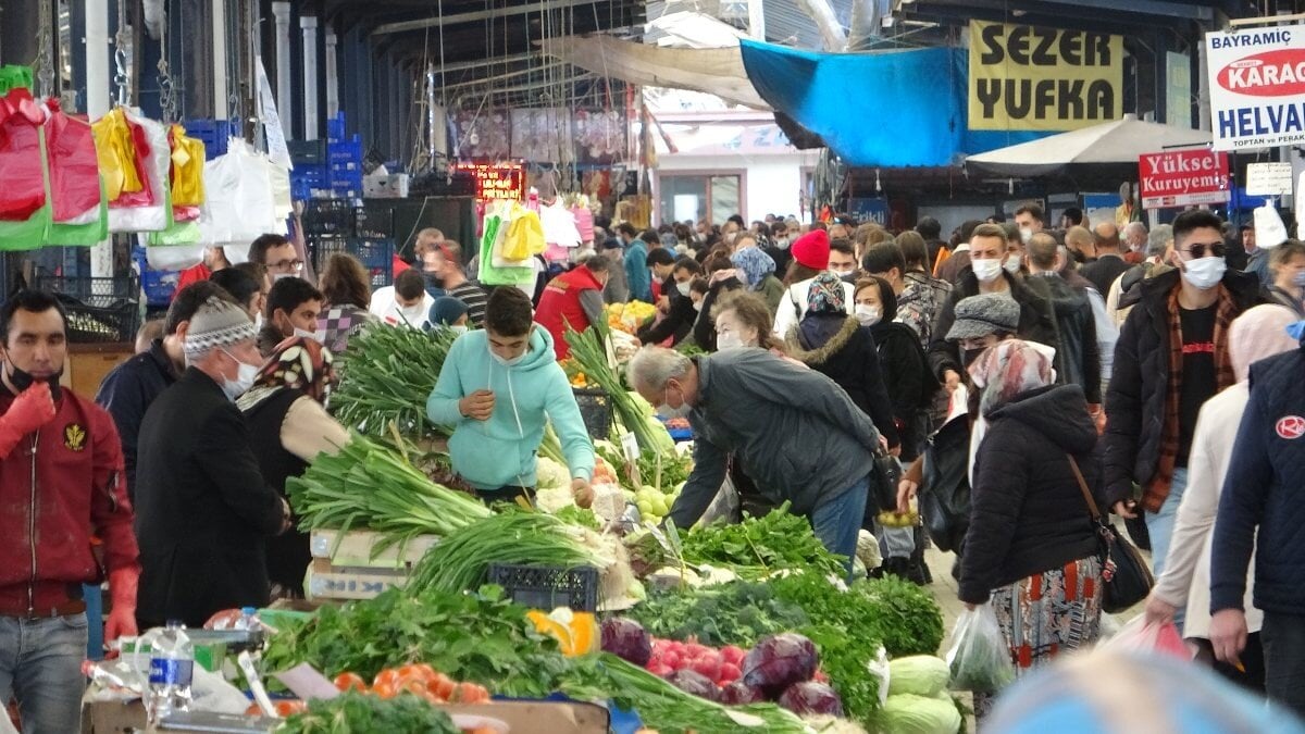 Çanakkalelilerin 4 günlük sokağa çıkma kısıtlaması nedeniyle pazarda daha çok gıda ürünleri satan tezgahlardan alışveriş yaptığı gözlemlendi.