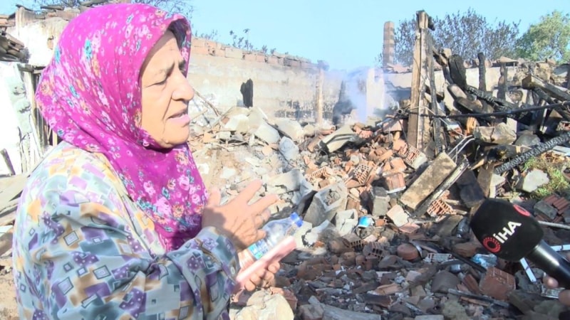 Bayramiç ilçesinde çıkan orman yangınında evi zarar gören Faize Soran, yangında geriye sadece canı, kimliği ve telefonunun kalıp başka bir şeyinin olmadığını söyledi.