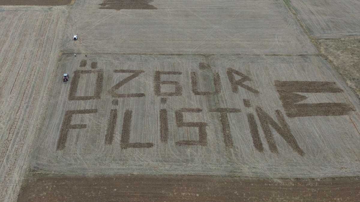 - Çanakkale'nin Biga ilçesinde çiftçi Hüseyin Savaş, tarlasına traktörle "Özgür Filistin" yazarak Filistin'e destek verdi.