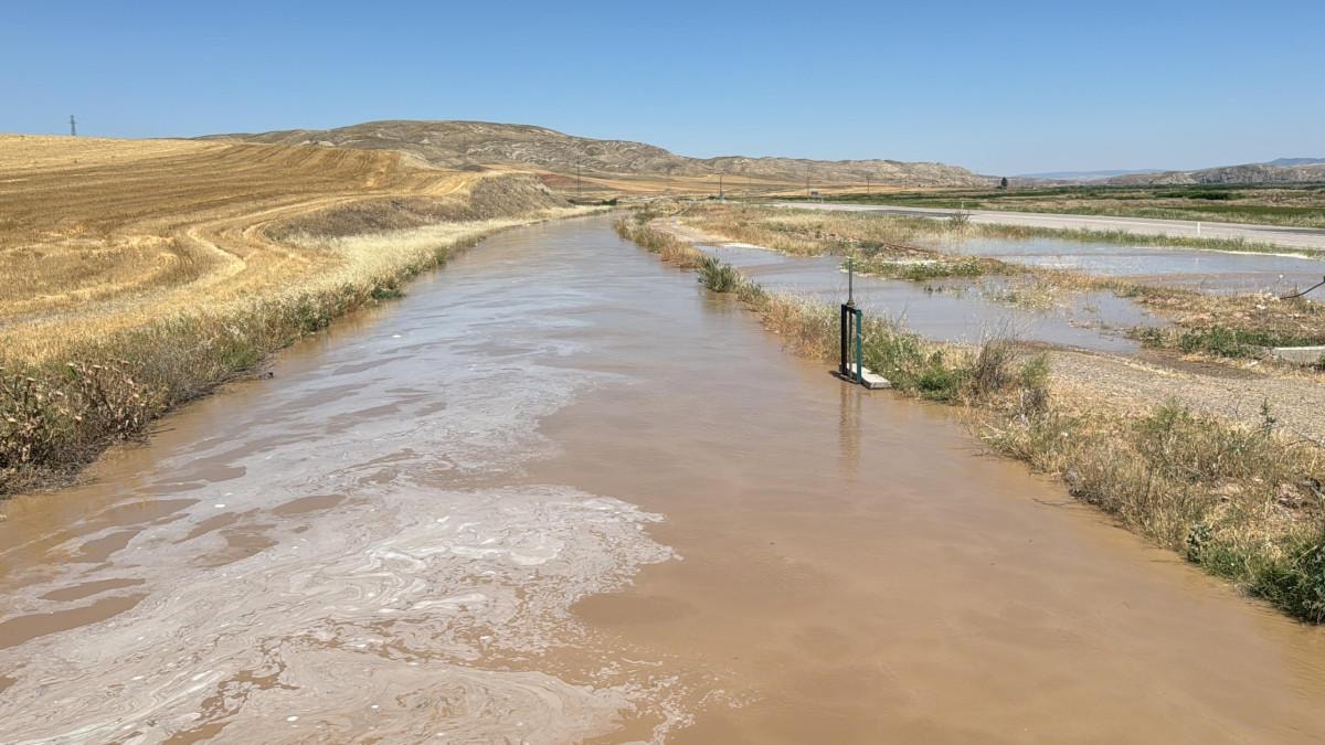 Kanaldan taşan sular, tarım arazilerini bastı.