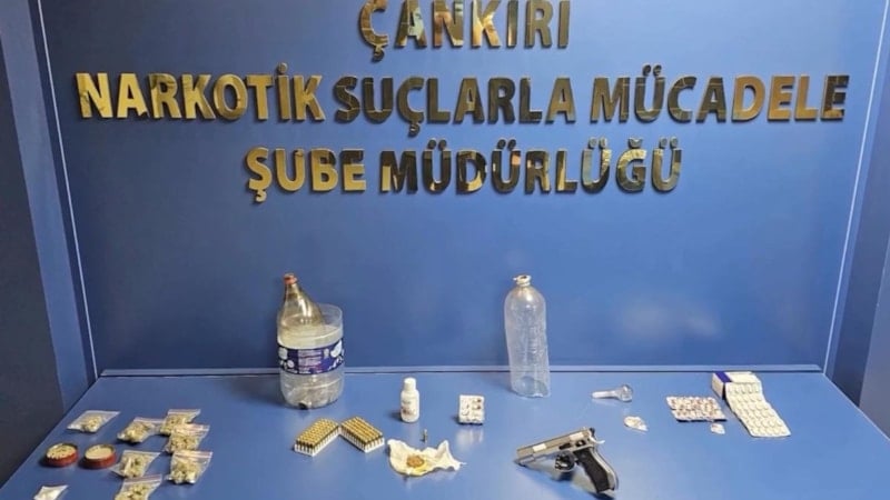 Operasyonda ayrıca esrar öğütücü, uyuşturucu kullanım aparatları, 100 adet fişek ve farklı kimyasal maddeler de ele geçirildi.